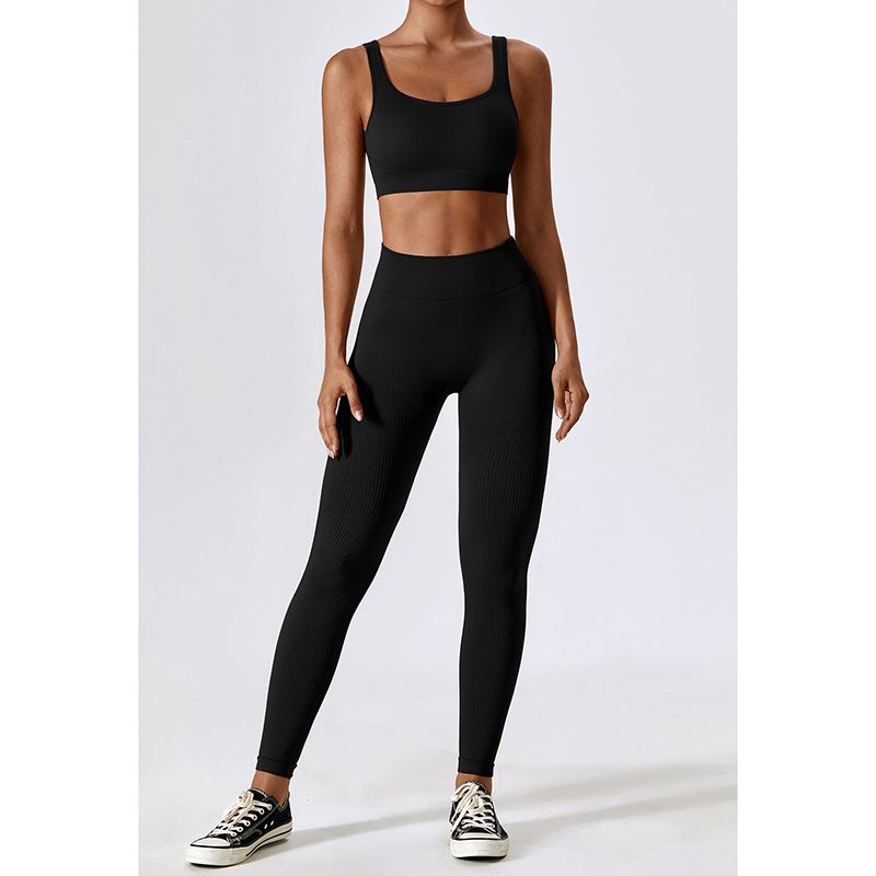 • Áo ngực thể thao cổ vuông có gânÁo ngực thể thao cổ vuông có gân