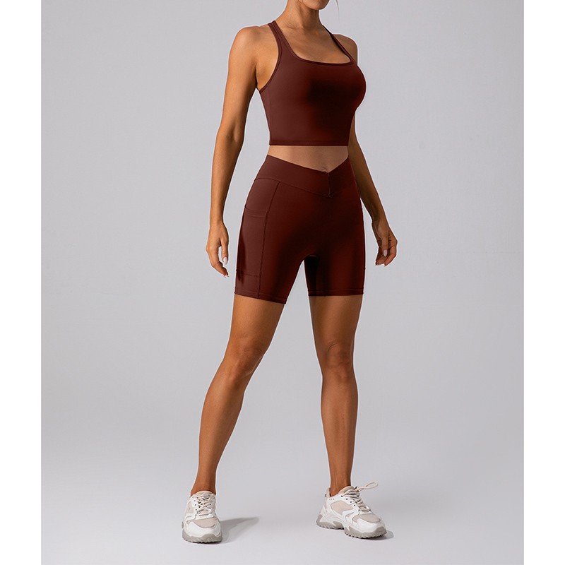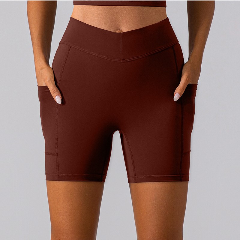 Bán buôn quần short chạy bộ thể thao co giãn cao. Quần short tập yoga có túi nâng eo chữ V cho nữ. Bạn cũng có thể tùy chỉnh quần short nữ màu nâu của riêng mình theo nhu cầu cụ thể của bạn.