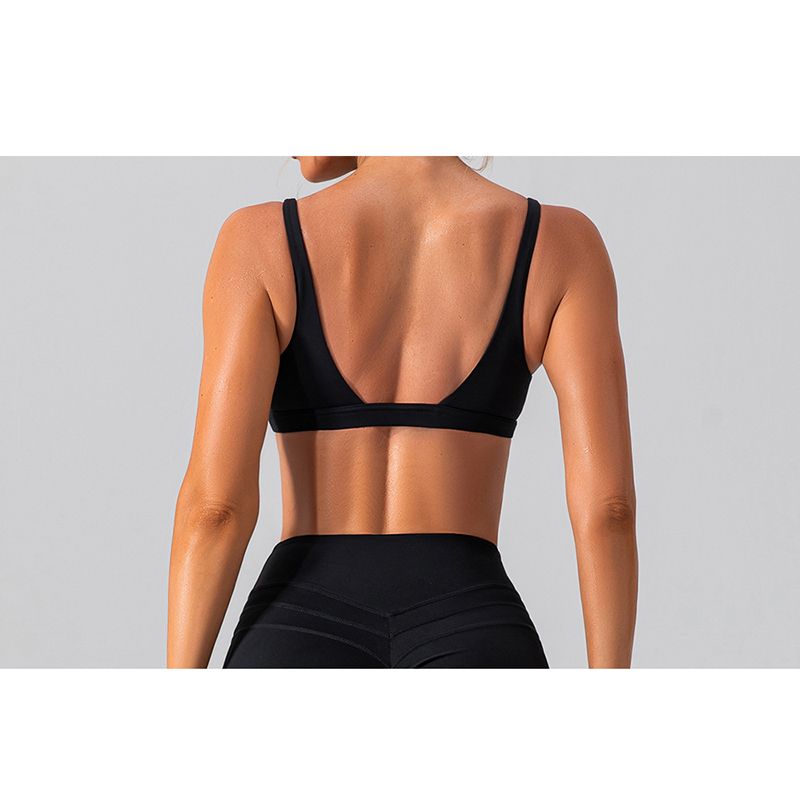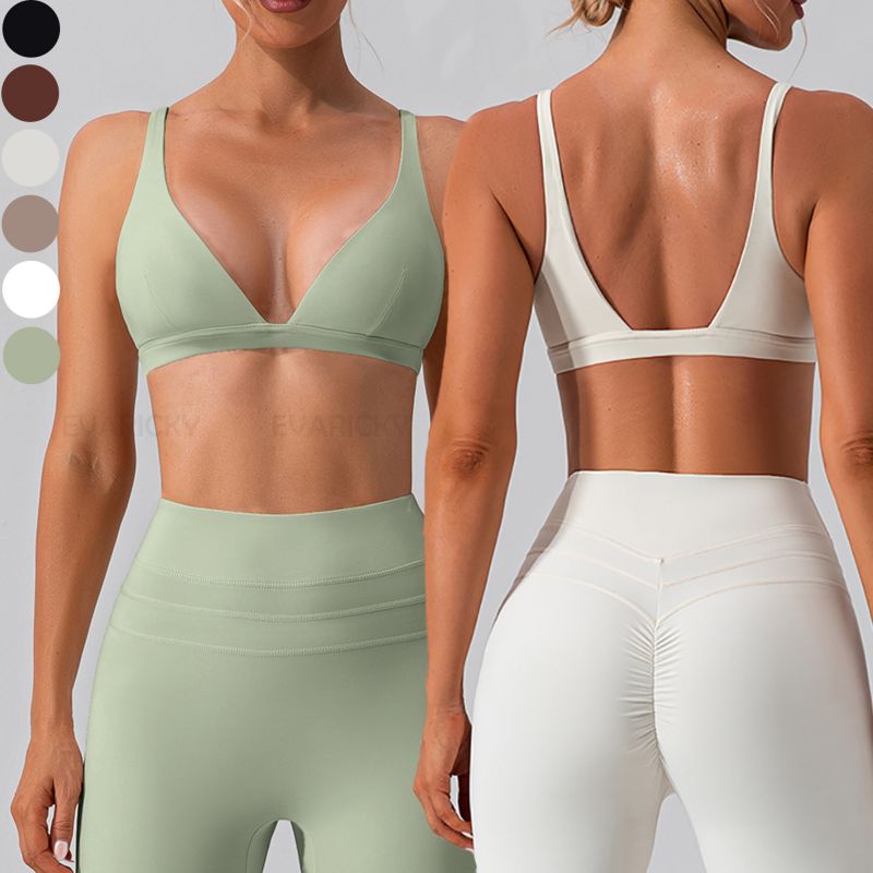 Áo ngực thể thao dáng sâu thiết kế cổ chữ V khoét sâu dành cho nữ. Áo ngực thể thao cúp ngực hình tam giác gợi cảm. Logo tùy chỉnh Phòng tập thể dục dành cho nữ Thể thao Mặc áo crop top tập luyện hở lưng. Chiếc áo ngực thể thao cổ thấp này được làm từ chất liệu chất lượng cao, khiến nó trở nên hoàn hảo cho mọi hoạt động thể chất.